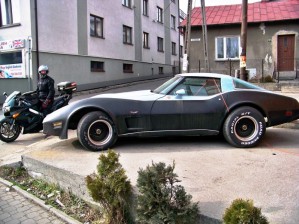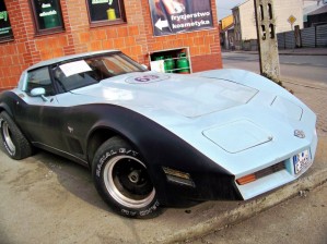 Ku naszej uciesze w drodze powrotnej mogliśmy obejrzeć reklamę salony fryzjerskiego w postaci samochodu. I nic w tym nie byłoby dziwnego (no może poza faktem, iż auto reklamuje fryzjera:) ), ale autko to Chevrolet Corvette rocznik 1978, a do tego wersja na 25-lecie modelu. Piękny widok szpecił jedynie widoczny na zdjęciu kabel, zapewne od przedłużacza:)