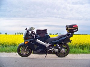Wiecie co jest najgorsze? Dniówka w pracy, ze świadomością, że za chwilę wskoczymy na motocykl i pojedziemy. Mimo wszystko, jakoś czas zleciał i o 14:00 jestem wolny:) Teraz 16 km powrotu do domu w ramach rozgrzewki i zaraz się zacznie. Kurczak kończy godzinkę później, więc na spokojnie mogę poznosić kufry i dopakować wszystko na przysłowiowy ostatni guzik. Wszystko gotowe, możemy ruszać. Startujemy o 16:00, w środę, dla wielu początek długiego weekendu majowego. Przed nami 410 km. Naszą największą obawą są zakorkowane miasta, ponieważ są to tak zwane godziny szczytuJ a do tego pewnie więcej osób podobnie jak my postanowiło wyruszyć po pracy.