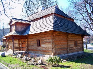 Kilka zdjęć, parę łyków picia i możemy jechać dalej. Do Miechowa. Tutaj jest już nasz pierwszy właściwy punkt programu. Parkujemy na rynku, wystrzegając się parkingowych, którzy kasują opłaty. Kręcimy się trochę przy rynku, żonka odwiedza cukiernię i spacerkiem zmierzamy w stronę modrzewiowego dworku z 1784 roku. Dworek ‘Zacisze’ to przykład rezydencji mieszczańskiej, charakteryzującej się oszczędnym detalem. Mimo to dworek jest bardzo urokliwy i miły dla oka. Wspólnie stwierdziliśmy, iż moglibyśmy w takim zamieszkać.