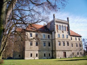 Miło się siedzi, ale pomalutku trzeba by się zbierać w drogę powrotną. Mamy zaplanowaną jeszcze jedną atrakcję. Żegnamy zamek oraz łabędzia i mozolnym tempem zbieramy się w drogę powrotną. Teraz coś za czym nie przepadam. Musimy dotrzeć do malenkiej wsi, której nawet nie ma na mapie i odnaleźć w niej pałac. Przy wyjeździe pytam przechodnia o namiary. Mamy skręcić w prawo i zaraz będzie. Ok. Jedziemy, jest skręt w prawo, skręcamy i wypatrujemy tablicy Mianocice. Jedziemy, jedziemy a jej nie ma. Pojawia się jakaś wioseczka i zabudowania, potem następna a tablicy dalej nie ma. Miała być zaraz za zakrętem, więc coś nie tak. Stajemy przy jakimś gospodarstwie i pytamy starszej pani grabiącej siano. Mianocice są za nami, już je przejechaliśmy. Ehh, właśnie dlatego nie lubie jeździć po wsiach których nie znam :P. Wracamy, tablicy dalej nie ma żadnej, ale kątem oka wśród drzew odstrzegam pałac. Uff. Jesteśmy.