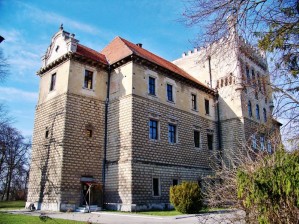 XIX-wieczny pałac otoczony pięknym 6,9 ha parkiem z resztkami starego drzewostanu wita nas zamkniętą bramą i kamerami. Obecnie mieści się tutaj dom pomocy społecznej. Calą sytuację ratuję fakt, że całośc otacza niewielki płot, więc można zobaczyć cały pałac zza ogrodzenia. Cóż, jak się nie ma co się lubi, to się lubi co się ma. Spacerek wzdłóż płotku i po chwili jestem już prawie na wyciągnięcie ręki od pałacu. Robię zdjęcia i można wracać do moto, które stoi pod bramą. W tym momencie jak na ironię losu, brama zdalnie się otwiera. Hmm…, albo nas dostrzegli w kamerach albo ktoś będzie wyjeżdżał. Jednak to drugie, z tym, iż ktoś przyjechał. Co prawda brama po jego wjeździe została otwarta i zachęca do wejścia, ale mam już zdjęcia i widziałem co chciałem.