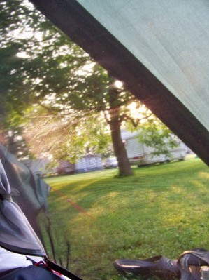 Ruszamy po pracy, w tym tygodniu wypada to na godzinę 18. Plan na dziś prosty. Dojazd 250 km do Sandomierza i zainstalowanie się na campingu Browarnym. Optymistyczna wersja zakłada dojazd na ok. 22:00. Jedziemy. W Siewierzu skręcamy na drogę nr. 78, która poprowadzi nas aż do Chmielnika. Czar pryska przed Zawierciem. Korki, korki, straszne korki:). Powoli kulamy się poboczem, żeby choć troszkę przyspieszyć podróż. Temperatura płynu chłodzącego szybko osiąga 104 C i radośnie zaczyna towarzyszyć nam dźwięk wentylatora chłodnicy:). Od tej pory przez sporą część trasy jest naszym kompanem. Mozolnie przeciskamy się do przodu a końca nie widać. Dopiero sporo za Zawierciem sytuacja się poprawia i można zapiąć biegi wyższe niż dwójka:). Dalsza część trasy jest już spokojniejsza. Ruch maleje a niebo spowiły granatowe chmury. Mamy nadzieję, że uda nam się uciec przed deszczem. W Staszowie okazuje się, iż droga na Osiek i dalej Sandomierz jest zamknięta i trzeba jechać o wiele dłuższym objazdem. Jest już przed 22:00 a niebo w oddali co chwilę rozdzierają błyskawice. Jak na złość nie ma żywej duszy żeby zapytać o drogę. Po chwili przejeżdżające auto zatrzymuje się koło nas i mamy już potrzebne informacje. Droga jest przejezdna, ale rozkopana i trzeba uważać. Szybka decyzja i jedziemy. Odcinek 22 km dłuży się strasznie a całość przypomina film grozy. Pusta, rozkopana droga w środku lasu, ciemno, brak kogokolwiek poza nami i niebo pełne błyskawic:). W końcu dojeżdżamy do miasteczka Osiek a tam wskakujemy na krajową 79 na Sandomierz. Chwila moment i jesteśmy. Na zegarku 22:30. Nie jest źle. Na campingu zapowiadaliśmy się na 22, mam nadzieję, że ktoś na nas czeka:). Lokalizujemy campa i stajemy przed recepcją. Po chwili wychodzi miły Pan i mówi, że wie kim jestem:) Poczułem się prawie jak gwiazda hollywood:P Zaczynamy się rozkładać a z nieba spadają krople deszczu… No to się nam udało:). Po chwili deszcz jednak zanika za to komary chcą nas zjeść żywcem. Szybki prysznic i do namiotu.