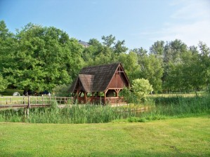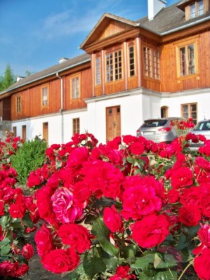 Budzę się bardzo wcześnie, a jak na mnie to prawie w środku nocy. Patrzę na zegarek i oczom nie wierzę:) 5:30. Trzeba jeszcze trochę pospać. 6, 6:30, nie no wstaję bo i tak nie zasnę. Żonka śpi jak bóbr:). Poranna toaleta a potem zapoznanie się z okolicą na campie bo już jest jasno i coś widać. Camping bardzo fajnie, malowniczo położony u stóp starego miasta. Na terenie jest oczko wodne z altaną do grilla, wyposażona kuchnia oraz zabytkowy drewniany dworek w towarzystwie wielokolorowych róż. Bardzo ładnie. Chodzę i robię zdjęcia w nadziei, że Kurczak (żonka) zaraz się obudzi:). Obudziło się biedactwo na chwilę i znów zasnęło. No to pomyślałem, że pójdę już na zakupy. Obok campa jest Galeria Sandomierz a w niej Carrefour. Jest świeże pieczywo i wszystko inne czego potrzeba na poranne śniadanie. Dostaję smsa, że Kurczaki już obudzone:).