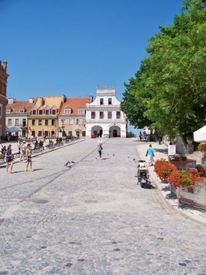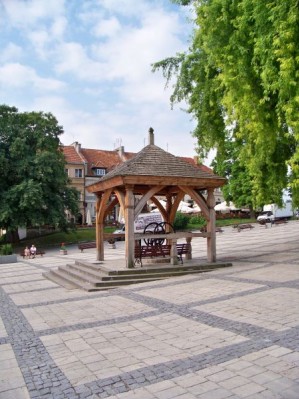 Najedzeni przygotowujemy się do wymarszu na stare miasto a piwko trafia do campowej lodówki w celu schłodzenia i będzie oczekiwać naszego powrotu. Po poprzednim instruktażu wychodzimy furtką na tyłach campingu i po pokonaniu stromych schodów już jesteśmy na rynku oszczędzając sporo drogi. Tak oto dotarliśmy do miasta filmowego Ojca Mateusza:).
