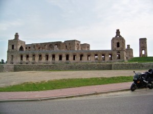 Rano budzi nas słoneczko. Fakt ten bardzo nas ucieszył ponieważ zapowiadali na dziś pogorszenie pogody i deszcz. Jednak co ma wisieć nie utonie, więc wszystko jeszcze przed nami:). Czas opuszczać to miłe i sympatyczne miejsce. Zaczynamy pakowanie. Chwilę po nas zaczyna pakowanie również nasz sąsiad, który jedzie skuterkiem dookoła Polski (pozdrawiamy). Kiedy jesteśmy już gotowi i opuszczamy camping niebo przykrywają ciemne deszczowe chmury. Podjeżdżam jeszcze na stację, sprawdzam opony i tankuję paliwko na drogę powrotną. Żegnamy Sandomierz i kierujemy się do miejscowości Ujazd, gdzie znajduję się zamek Krzyżtopór. Ten zamek legendę chciałem zawsze odwiedzić, ale jakoś nie mogłem się do tego zabrać:). Wybudowany przez Krzysztofa Ossolińskiego w latach 1631-44 stał się największą siedzibą magnacką w Polsce i w Europie (do czasu wybudowania Wersalu). Powierzchnia zamku to 1,3 ha i 70 tyś m3 kubatury. Zamek był manifestacją bogactwa rodu Ossolińskich. Posiadał m.in. marmurowe żłoby dla koni oraz przeszklony sufit w jadalni, przez który można było obserować pływające ryby w wielkim akwarium. Stajnie oświetlał specialny układ luster a cały zamek posiadał centralne ogrzewanie. Architektonicznie nawiązywał do kalendarza: miał 4 baszty, 12 sal, 52 pokoje i 365 okien. Trudno uwierzyć, że w pełnej krasie istniał zaledwie 11 lat. Rok po wybudowaniu zamku Krzysztof zmarł na malarię a jego syn zginąl wkrótce w walce z Tatarami. Kolejni właściciele nie byli w stanie utrzymać tak potężnej i wspaniałem budowli. Wszystko to sprawiło, iż zaczęto uważać, że na zamek rzucona jest klątwa. Krzysztof ujawnił skłonności do astrologii i magii umieszczając nad wejściem w wieży bramnej hieroglif przypominający literę W. Zgodnie z księgą kabały, ma ona symbolizować wieczne trwanie tego miejsca.