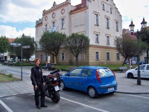 Parkujemy moto na rynku i zwiedzamy okolicę. W Pyskowicach zachował się średniowieczny urbanistyczny układ starego miasta, na którym możemy znaleźć m.in. zabytkowe budynki mieszkalne z XVIII i XIX w. oraz ratusz datowany na rok 1822. Jest też zabytkowa fontanna. Calość sprawia miłe wrażenie, aczkolwiek wizerunek miasta psują trochę okoliczne ‘lumpy’, których kręci się dość dużo. Taki już urok naszego kraju :)